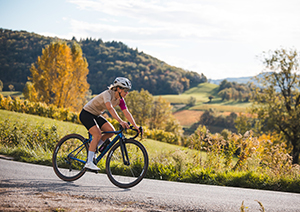 リムハイト40mm前後のホイールは直進安定性が高く、下りや巡航が快適。